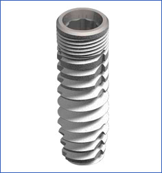 Es ist ein konisches Pressimplantat zur Anwendung im stark zurückgebildeten Kiefer ohne eine not- wendige Knochenauffüllung. Es bietet erweiterte Indikationsmöglichkeiten insbesondere bei flachen Kieferkämmen!