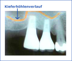 Implantate können im Oberkiefer auch bei verringertem Knochenanbgebot zur Kieferhöhle gesetzt werden. Der Patient erspart sich in den meisten Fällen eine Operation zur Auffüllung der Kieferhöhle mit Knochen. Eine aufwändige Kieferhöhlenoperation kann somit oft vermieden werden.
